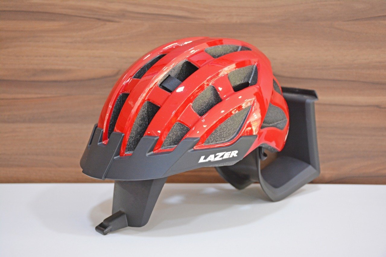 Capacete de ciclismo de entrada da marca belga Lazer direcionado ao público adulto para uso recreativo e esportivo no Mtb e lazer, disponível nas cores preta, vermelho, prata e branco